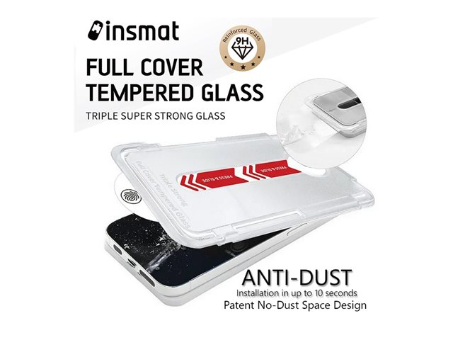 The Insmat screen protector offers reliable protection for cellular phones, designed to meet the demands of modern users. Made from high-quality tempered glass, this protector features a 9H hardness rating, ensuring it can withstand impacts and daily wear while remaining clear. Its oleophobic coating repels fingerprints and smudges, providing a clean view of your device's display. Along with easy and dust-free installation facilitated by the included No-DUST frame and cleaning cloths, the screen protector is engineered for a full cover that enhances durability without compromising on style.