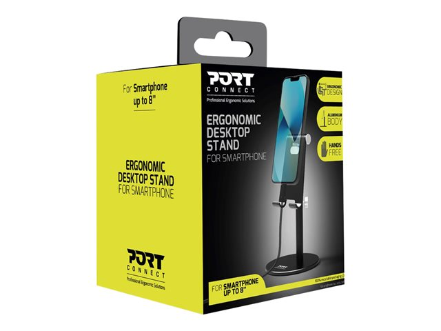 PORT Designs PORT Connect desktop-stativ er designet til dem, der værdsætter funktionalitet og æstetik. Stativet er fremstillet af materialer af høj kvalitet, herunder aluminium, silikone og ABS-plast, og forbedrer brugeroplevelsen for mobiltelefoner. Det ergonomiske design sikrer komfort under brug af din enhed, hvilket gør det til et uundværligt tilbehør til ethvert arbejdsområde eller hjem. Justerbarhed er en vigtig funktion ved dette stativ, da brugerne kan tilpasse højden og betragtningsvinklen efter deres præferencer. Denne alsidighed gør det velegnet til forskellige opgaver, uanset om det er videosamtaler, læsning eller visning af indhold. Kombinationen af stil og praktisk anvendelighed gør PORT Connect til et must-have for alle, der ønsker at forbedre brugen af deres enhed.