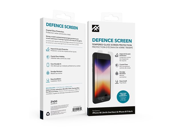 ZAGG InvisibleShield Defense-skærmbeskytteren er et førsteklasses tilbehør, der er designet til at beskytte din mobiltelefons skærm mod hverdagens slitage. Den er fremstillet af holdbart glas og beskytter din enhed mod ridser og stød, hvilket sikrer langvarig beskyttelse. Dets krystalklare sammensætning sikrer, at du har uhindret udsyn og respons på skærmen, hvilket gør det til et ideelt valg til at holde din telefons skærm i perfekt stand. Det er nemt at påføre og giver en boblefri installation, der problemfrit integreres med din enhed og giver et glat, næsten usynligt skjold.