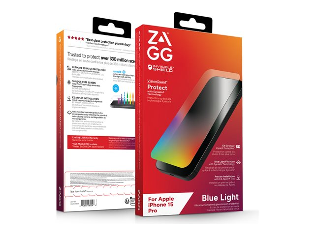Blålysfilter og antimikrobiell behandling beskytter skjermbeskytteren din. InvisibleShield Glass Elite VisionGuard har fått en antimikrobiell behandling som beskytter skjermbeskytteren ved å hemme veksten av bakterier som lukter og beskytter mot nedbrytning fra mikroorganismer. Digital anstrengelse på øynene fra langvarig eksponering for enhetsskjermer kan forårsake for tidlig aldring av øynene, tørre og irriterte øyne, søvnforstyrrelser og tåkesyn. Det beskyttende Eyesafe-laget i Glass Elite VisionGuard filtrerer skadelig høyenergisk synlig lys fra skjermen på mobiltelefonen. Eyesafe-teknologi filtrerer 60 % av maksimalt skadelig blått lys ved 435 - 440nm, og beskytter mot effektene av overeksponering for blått lys med høy energi. Dette herdede filtreringsglasset er 5 ganger sterkere enn tradisjonell skjermbeskyttelse og mer ripebestandig. ClearPrint teknologi er en unik overflatebehandling - brukt eksklusivt av InvisibleShield - som skjuler synligheten av fingeravtrykkene på skjermbeskytteren din. Denne oleofile prosessen er utviklet av NBD Nanotechnologies, og den sprer oljer fra fingeravtrykk så tynt på overflaten at den lar lys passere gjennom oljen, noe som gjør fingeravtrykk nesten usynlige. Glass Elite VisionGuard har EZ Apply-fliker og leveres med et installasjonsbrett for å sikre en nøyaktig justering.