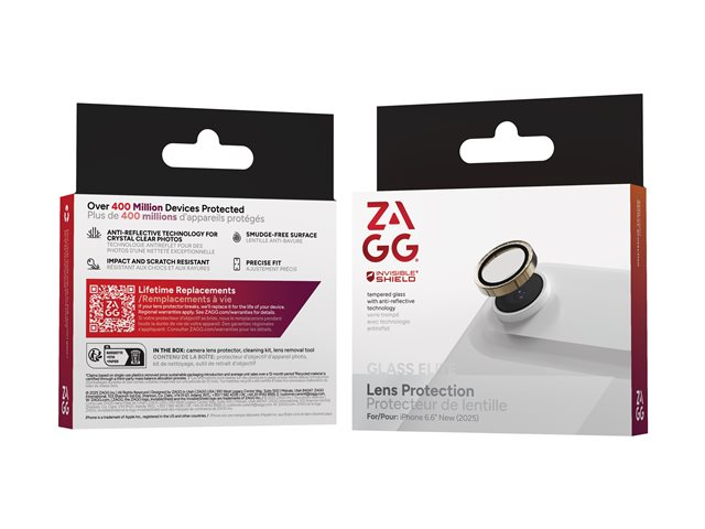 Beskyt din investering i din mobiltelefon med ZAGG InvisibleShield Premium GL-linsebeskyttelse. Denne linsebeskyttelse er fremstillet af aluminiumsilikatglas og tilbyder flere niveauer af beskyttelse, herunder modstandsdygtighed over for stød, ridser og støv. De antireflekterende og fingeraftryksresistente egenskaber sikrer klar synlighed og nem rengøring, mens smudsafvisende teknologi holder overfladen ren og pæn. Med 30 % genanvendt indhold fra genbrugsglas er denne linsebeskyttelse et miljøvenligt valg, der ikke går på kompromis med ydeevnen.