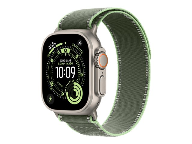 Apple Watch-remmen er designet til brug med smarture og passer perfekt til håndled med en omkreds på 130 til 180 mm. Denne alsidige trail-rem er kompatibel med urkasser i størrelserne 44 mm, 45 mm, 46 mm og 49 mm, hvilket gør den til et praktisk valg for en lang række brugere. Remmen er fremstillet af genanvendt polyester og spandex samt reflekterende garn, hvilket prioriterer bæredygtighed og øger synligheden. Den naturlige titaniumfinish tilføjer elegance og sikrer samtidig holdbarhed, så det opfylder kravene til både hverdagsbrug og en aktiv livsstil.