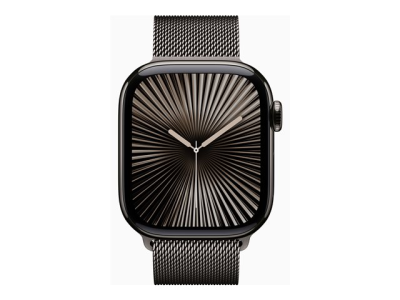 Apple Watch Series 10 (GPS + Cellular) - 42 mm - skifer titanium - smart ur med milanesisk løkke - rustfrit stålnet - skifer - håndledsstørrelse: 130-180 mm - 64 GB - LTE, Wi-Fi 4, UWB, Bluetooth - 4G - 34.4 g MX053QN/A
