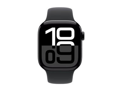Apple Watch Series 10 (GPS) - 42 mm - jet sort aluminium - smart ur med sportsbånd - fluoroelastomer - sort - båndstørrelse: S/M - 64 GB - Wi-Fi 4, UWB, Bluetooth - 30 g MWWE3QN/A