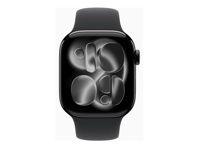 Apple Watch Series 11 (GPS + Cellular) - 42 mm - jet sort aluminium - smart ur med sportsbånd - fluoroelastomer - sort - båndstørrelse: S/M - 64 GB - Bluetooth, LTE, Wi-Fi 4, UWB - 5G - 29.7 g