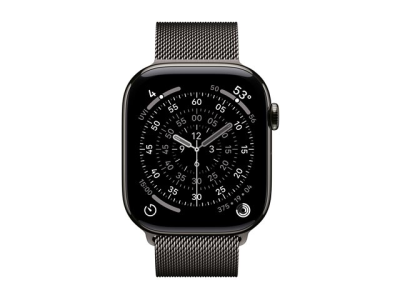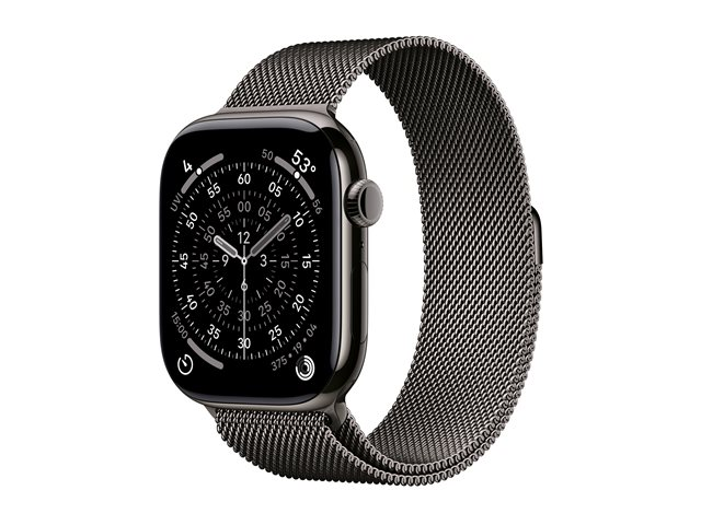 Apple Watch Series 11 (GPS + Cellular) - 46 mm - skifer titanium - smart ur med milanesisk løkke - rustfrit stålnet - skifer - båndstørrelse: M/L - 64 GB - LTE, Wi-Fi 4, UWB, Bluetooth - 5G - 43.1 g MFD44QN/A
