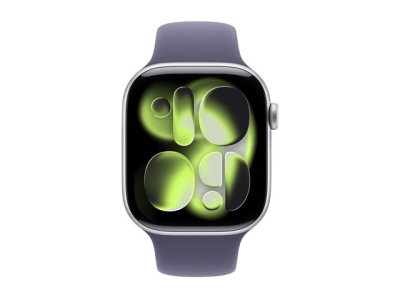 Apple Watch Series 11 (GPS + Cellular) - 46 mm - sølvaluminium - smart ur med sportsbånd - fluoroelastomer - lilla tåge - båndstørrelse: M/L - 64 GB - LTE, Wi-Fi 4, UWB, Bluetooth - 5G - 36.9 g MFCR4QN/A