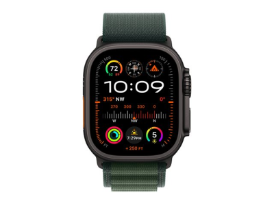 Apple Watch Ultra 2 - 49 mm - sort titanium - smart ur med Alpine Loop - tekstil - mørkegrøn - båndstørrelse: S - 64 GB - LTE, Wi-Fi 4, UWB, Bluetooth - 4G - 61.8 g