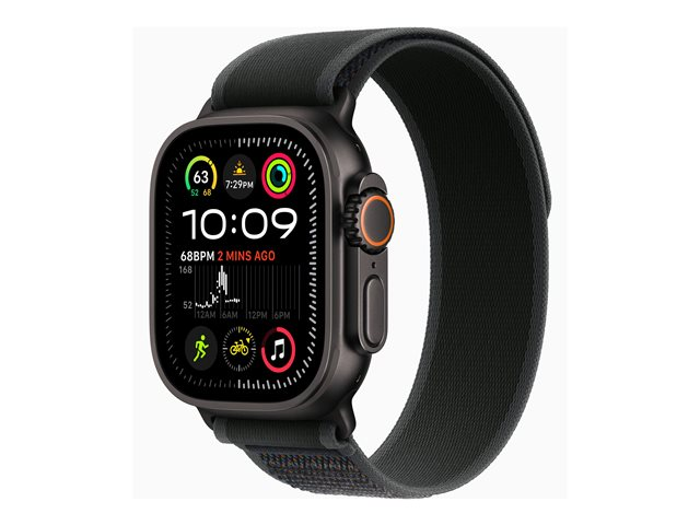 Apple Watch Ultra 2 - 49 mm - sort titanium - smart ur med Trail Loop - nylonflet - sort - båndstørrelse: M/L - 64 GB - LTE, Wi-Fi 4, UWB, Bluetooth - 4G - 61.8 g MX4V3DH/A