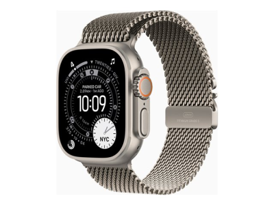 Apple Watch Ultra 3 - 49 mm - naturlig titanium - Ja smart ur med milanesisk løkke - båndstørrelse: S - 64 GB - LTE, NFC, Wi-Fi 4, UWB, Bluetooth - 5G - 61.6 g