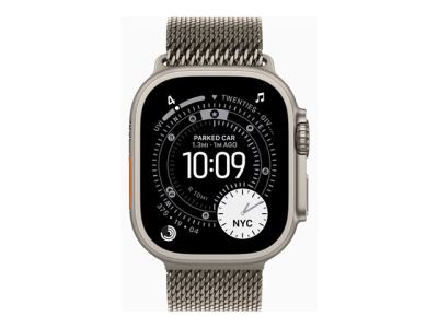 Apple Watch Ultra 3 - 49 mm - naturlig titanium - Ja smart ur med milanesisk løkke - båndstørrelse: M - 64 GB - LTE, NFC, Wi-Fi 4, UWB, Bluetooth - 5G - 61.6 g