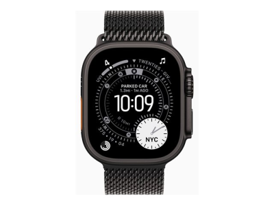 Apple Watch Ultra 3 - 49 mm - sort titanium - Ja smart ur med milanesisk løkke - båndstørrelse: M - 64 GB - LTE, NFC, Wi-Fi 4, UWB, Bluetooth - 5G - 61.8 g