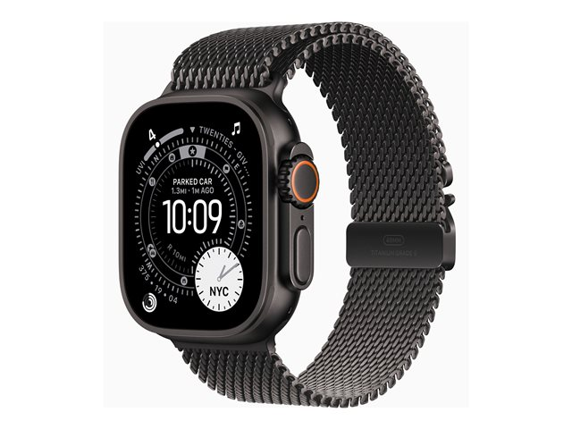 Apple Watch Ultra 3 - 49 mm - sort titanium - Ja smart ur med milanesisk løkke - båndstørrelse: L - 64 GB - LTE, NFC, Wi-Fi 4, UWB, Bluetooth - 5G - 61.8 g