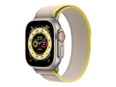 Apple Watch Ultra - 49 mm - titanium - smart ur med Trail Loop - blød dobbeltlagsnylon - gul/beige - båndstørrelse: S/M - 32 GB - Wi-Fi, LTE, UWB, Bluetooth - 4G - 61.3 g