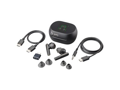 HP Poly Voyager Free 60+ - Ægte trådløse øretelefoner med mik. - i øret - Bluetooth - aktiv støjfjerning - USB-A via Bluetooth adapter, 3,5 mm jackstik - carbon-sort - Certified for Zoom Rooms