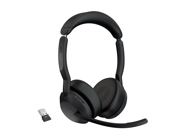 Jabra Evolve2 55 UC Stereo - Headset - på øret - Bluetooth - trådløs - aktiv støjfjerning - USB-A - sort - Optimeret til UC