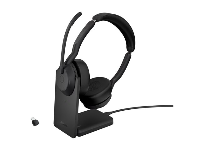 Jabra Evolve2 55 UC Stereo - Headset - på øret - Bluetooth - trådløs - aktiv støjfjerning - USB-C - sort - med opladningsstander - Zoom Certified, Cisco Webex Certified, Optimized for Microsoft Teams, Alcatel-Lucent Certified, Avaya Certified, Unify Certified, MFi Certified, Amazon Chime Certified