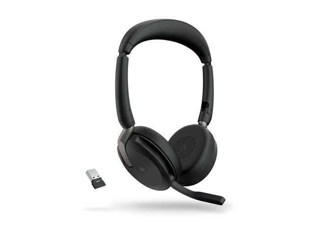 Jabra Evolve2 65 Flex MS Stereo - Headset - på øret - Bluetooth - trådløs - aktiv støjfjerning - USB-C - sort - med trådløs opladningsblok - Certified for Microsoft Teams