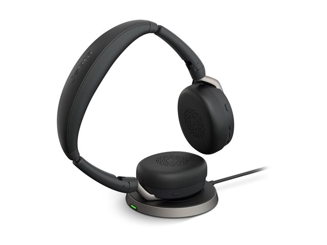 Jabra Evolve2 65 Flex MS Stereo - Headset - på øret - Bluetooth - trådløs - aktiv støjfjerning - USB-C - sort - med trådløs opladningsblok - Certified for Microsoft Teams