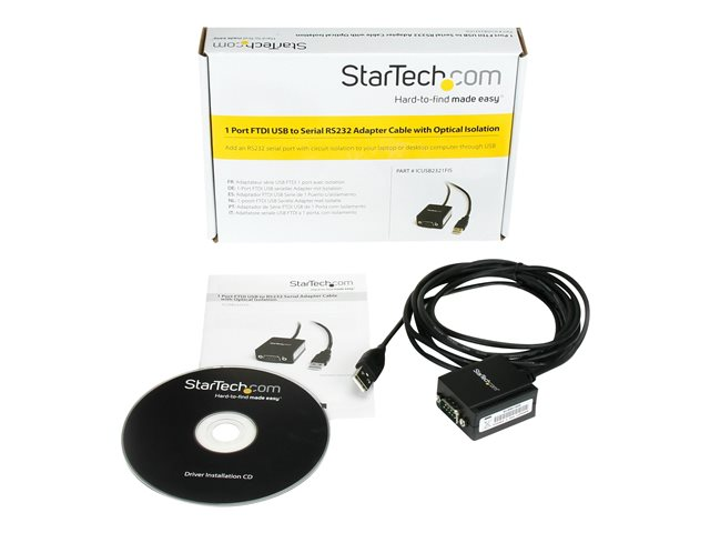 StarTech.com USB to Serial Adapter - Optical Isolation - USB Powered - FTDI USB to Serial Adapter - USB to RS232 Adapter Cable (ICUSB2321FIS) - Seriel adapter - USB - RS-232 - sort ICUSB2321FIS