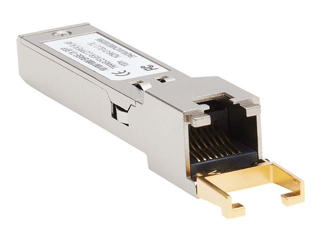 Eaton Tripp Lite-serien introducerer den Cisco-kompatible GLC-TE SFP-transceiver, et kobberbaseret RJ45 Cat6-modul, der er designet til at forbedre dine netværksfunktioner. Med understøttelse af Ethernet 1000Base-TX og en dataoverførselshastighed på 1 Gbps er dette transceivermodul konstrueret til at lette problemfri og effektiv netværkskommunikation over en afstand på op til 100 m (328 fod). Det har tovejsfunktioner, en MDI/MDI-X-switch og er hot-swappable, hvilket sikrer minimal nedetid og nem vedligeholdelse. Den overholder vigtige standarder som EMI, MSA og RoHS og opfylder dermed kravene til miljø- og sikkerhedsoverensstemmelse. Uanset om du opgraderer et eksisterende netværk eller opretter et nyt, tilbyder den Cisco-kompatible GLC-TE SFP-transceiver en pålidelig, holdbar løsning af høj kvalitet til dine netværksbehov.