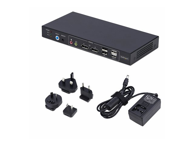 StarTech.com 2-Port Dual-Monitor DP KVM Switch w/Video Matrix, 4K 60Hz - KVM / audio / USB switch - 2 x KVM / audio / USB - 1 lokalbruger - desktop - TAA-kompatibel P2ADD121D-KVM-SWITCH