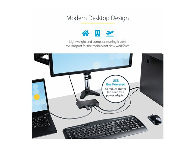 StarTech.com 2 Port Hybrid USB-A + HDMI & USB-C KVM Switch, Single 4K 60Hz HDMI 2.0 Monitor, Compact Desktop and/or Laptop HDMI KVM Switch, USB Bus Powered, Thunderbolt 3 Compatible - 2 Port HDMI KVM Switch (SV221HUC4K) - KVM / audio-switch - 2 x KVM / audio - desktop