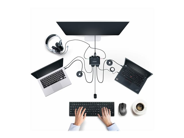 StarTech.com 2-Port USB-C Cable KVM Switch, 4K 60Hz DisplayPort Output, Compact KVM with 4ft/1.2m USB Type-C/Audio Integrated Cables, Bus Powered - Remote Push-Button/Hotkey Switching (C2-D46-UC2-CBL-KVM) - KVM / audio-switch - kompakt - 2 x KVM / audio - 1 lokalbruger - desktop