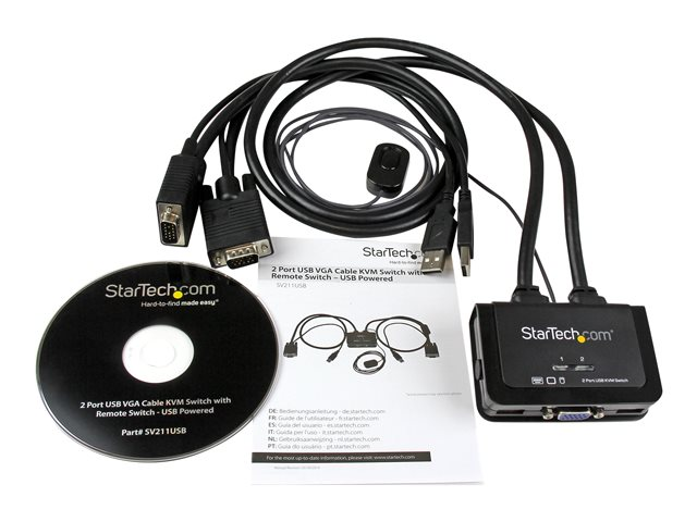 Control two VGA, USB-equipped PCs with a single monitor, keyboard, and mouse peripheral set. The SV211USB 2-Port VGA Cable KVM Switch lets you control two VGA, USB-equipped PCs with a single monitor, keyboard and mouse.