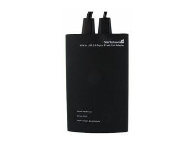Forvandl enhver laptop til en konsol til headless servere, pc'er, pengeautomater, kiosker og meget mere. NOTECONS01 KVM Console to USB 2.0 Portable Laptop Crash Cart Adapter forvandler din notebook eller netbook til en bærbar server crashcart, så du slipper for at slæbe rundt på en stor, tung og uhåndterlig videoskærm, tastatur og mus. Denne adapter leverer VGA-strømmen fra enhver værtscomputer til en bærbar computer og emulerer den bærbare computers mus- og tastaturudgange for enkel adgang til og kontrol af tilsluttede servere, pc'er eller andre "hovedløse" enheder.