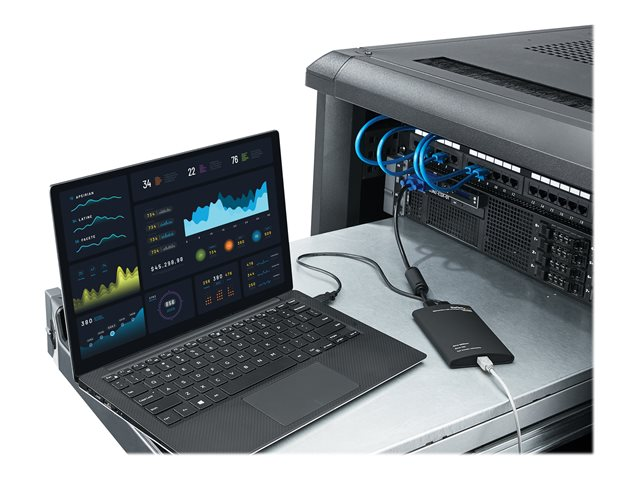 Denne USB-drevne adapter er designet til at være bærbar for den mobile administrator eller reparationstekniker, og den fylder ikke meget og kræver ikke ekstra tilbehør for at kunne tilsluttes de fleste servere, og der skal ikke installeres software på serversiden. Desuden får adapteren i lommeformat strøm fra USB-forbindelserne på serversiden, så den bærbare/netbooken kan holde længere uden at bruge batteri.