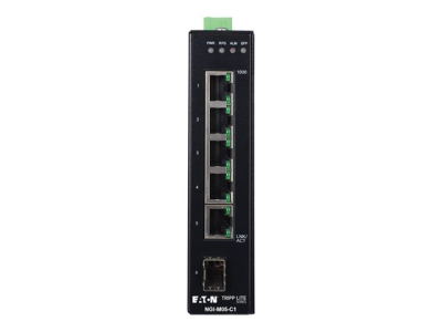 Eaton Tripp Lite series 5-Port Managed Industrial Gigabit Ethernet Switch - 10/100/1000 Mbps, GbE SFP Slot, -40° to 75°C, DIN Mount - Switch - Administreret - 5 x 10/100/1000 + 1 x Gigabit SFP (uplink) - DIN monterbar på skinne - DC strøm - TAA-kompatibel