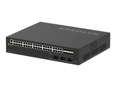 NETGEAR AV Line M4250-40G8XF-PoE++ - Switch - L3 - Administreret - 40 x 10/100/1000 (PoE++) + 8 x 1 Gigabit / 10 Gigabit SFP+ - side til side-luftstrøm - monterbar på stativ - PoE++ (2880 W) GSM4248UX-100EUS