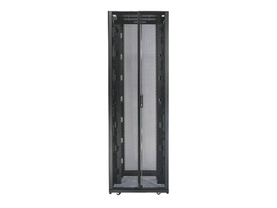 NetShelter SX-kabinetter med mange funktioner er optimeret til nem installation, håndtering af kabler, integrering af strømfordeling og maksimering af luftstrømmen. Leverandøruafhængig montering for garanteret kompatibilitet med alt EIA-310-kompatibelt 19"-udstyr. APC's "Fits Like a Glove"-pengene-tilbage-garanti giver ro i sindet om, at alt dit EIA-310-E-kompatible rackmonterede udstyr fysisk vil passe i et NetShelter-skab. Store kabelåbninger i taget giver adgang til kabelgennemføring over hovedhøjde. Det nederste design giver uhindret kabeladgang gennem et hævet gulv.