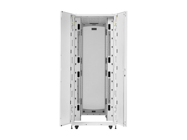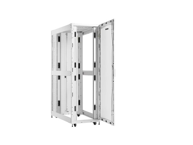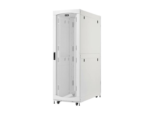 Eaton SmartRack 42U ekstra dybt rackkabinet i standardbredde til tungt udstyr er designet til at imødekomme behovene i AI-serverapplikationer med sin robuste konstruktion og gennemtænkte funktioner. Dette rackkabinet er fremstillet af stål og tilbyder holdbarhed og stabilitet med en vægtgrænse på 2268 kg. Det ekstra dybe design muliggør bedre luftgennemstrømning og kabelstyring, mens den aflåselige funktion sikrer sikker adgang til vigtigt udstyr.