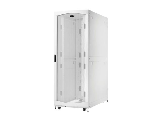 Eaton SmartRack 45U ekstra dybt og ekstra bredt rackkabinet til tungt udstyr er designet til at imødekomme kravene til AI-servere med sin robuste konstruktion og rummelige design. Kabinettet er fremstillet af kraftigt stål og kan aflåses for ekstra sikkerhed, så vigtigt udstyr forbliver beskyttet. Det har fire lodrette monteringsskinner og er udstyret med nivelleringsben og hjul for nem mobilitet og stabilitet, hvilket gør det velegnet til datacentre og professionelle miljøer. Desuden giver pulverlakeringen holdbarhed og et rent udseende, hvilket forbedrer funktionaliteten og det visuelle udtryk.