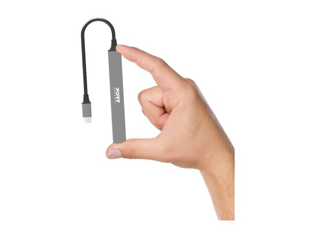 PORT Designs PORT Connect USB-C-hub tilbyder alsidig tilslutningsmuligheder til desktop-opsætninger og har et kompakt og slankt design, der gør den nem at integrere i ethvert arbejdsområde. Med et 10 cm USB-C-kabel, der leverer op til 100 W strøm, sikrer den problemfri opladning og dataoverførsel via sine mange porte. Nyd fordelene ved Plug-and-Play-teknologi, der giver hurtig og nem opsætning uden behov for ekstra drivere.