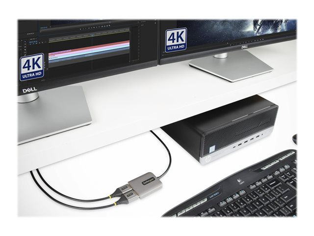StarTech.com 2-Port DisplayPort MST Hub, Dual 4K 60Hz, DP to 2x DisplayPort Monitor Adapter, DP 1.4 Multi-Monitor Video Adapter w/ 1ft Built-in Cable, USB Powered, Windows Only - Multi Stream Transport Hub (MST14DP122DP) - Hub - 1 x DisplayPort + 1 x micro-USB + 2 x DisplayPort