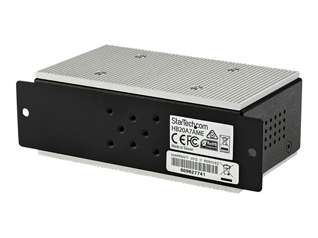 StarTech.com 7 Port USB 2.0 Hub, Metal Industrial USB-A Hub (7x USB-A) with ESD & Surge Protection, Extended Operating Temp -40 to 185°F, Din Rail/Wall/Desk Mountable, USB Expander, Rugged - Windows/macOS/Linux (HB20A7AME) - Hub - 7 x USB 2.0 - DIN monterbar på skinne - DC strøm - TAA-kompatibel - for P/N: ITB20D3250