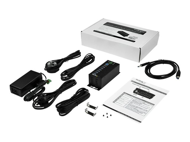 StarTech.com 7 Port USB Hub with Power Adapter, Surge Protection, Metal Industrial USB 3.0 Data Transfer Hub, Din Rail, Wall or Desk Mountable, High Speed USB 3.1/USB 3.2 Gen 1 5Gbps Hub - Windows/macOS/Linux (HB30A7AME) - Hub - 7 x USB 3.2 Gen 1 - DIN monterbar på skinne, væg-monterbar - TAA-kompatibel - for P/N: ITB20D3250 HB30A7AME