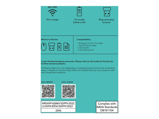 TRÅDLØS NU. Med Logitech M171 trådløs mus kan du kombinere pålideligheden ved ledningstilslutning med bekvemmeligheden ved trådløs - og en rækkevidde på 10 meter - takket være trådløs Logitech Advanced 2,4 GHz-teknologi. Denne prisbillige mus fungerer i 12 måneder på et enkelt AA-batteri. Konfigurationen er enkel - du skal bare slutte den lille trådløse modtager til en USB-port. Der er ingen problemer med etablering af binding eller softwareinstallation, og M171 er kompatibel med Windows, Mac og Chrome.