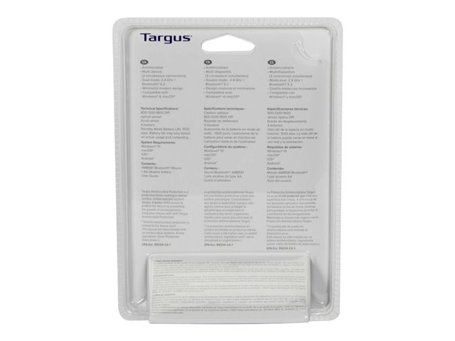 Targus - Mus - antimikrobiel - højre- og venstrehåndet - trådløs - Bluetooth 5.0 - sort