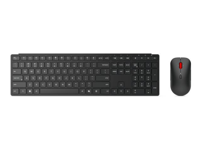 The Lenovo Pro Combo 6000 is a versatile keyboard and mouse set designed for productivity and comfort. With its spill-resistant design and adjustable height feature, it caters to a range of work environments while ensuring user comfort and durability. Wireless connectivity through Bluetooth 5.4 and a 2.4 GHz USB receiver provides flexible options, making it easy to use with various devices. This set includes a keyboard with a full QWERTY layout and a numeric keypad, facilitating seamless input for both work and entertainment. The mouse features high precision with a movement resolution of 4000 DPI, supporting efficient navigation. Built to last with a lifespan of up to 10 million clicks for the keyboard and 5 million clicks for the mouse, the Pro Combo 6000 combines functionality with a commitment to sustainability, being made with 95% post-consumer recycled plastic.