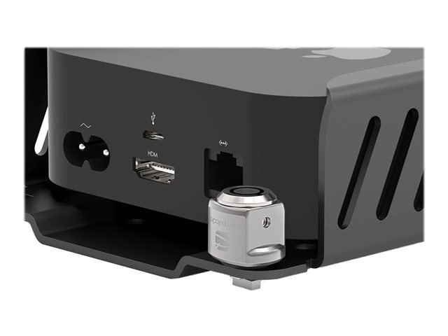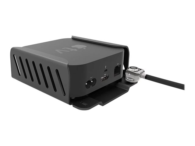 The Apple TV Lock and Mount security bracket can be fixed to any flat surface. You can safely screw the Mount to a wall, desk, underside of a table, cabinet, and even the back of a monitor. Once the bracket is secured all you need to do is slide your Apple TV into the Mount and connect the lock. The ventilated design protects your device against overheating and wireless signal loss while giving you total access to the power button, USB, HDMI and Ethernet ports to ensure complete user experience.