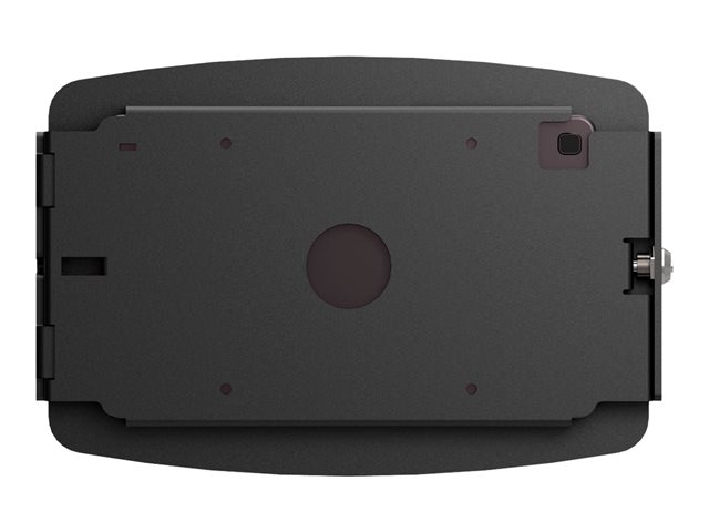 The enclosure features rounded edges and open corners for improved ventilation and allows for limited access to buttons and inputs. The tablet can be continuously charged while in the enclosure and have peripheral cables plugged in while mounted. Mount this enclosure flush to the wall or surface via the standard VESA pattern or pair it with one of the stands for a kiosk solution.