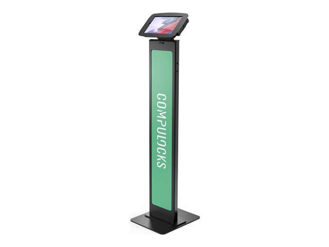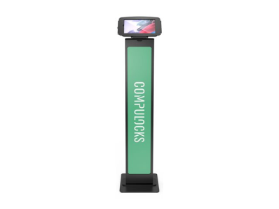 The BrandMe stand allows you to utilize a panel for branding, call to action or custom design to bring attention to your interactive display or kiosk. The tilting mount allows the Galaxy enclosure to be set in either portrait or landscape mode and the stand base offers additional security features, securing the power source and bolting the unit to the floor.