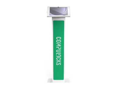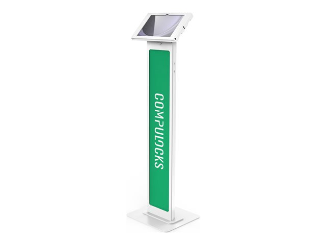 Compulocks Galaxy Tab A9+ Apex Enclosure Brandable Floor Stand - Monteringssæt (indelukke, stativ) - eksponeret front/bagsidekamera og sensorer - for tablet - fikseret 45 grader - låsbar - højglansaluminium - hvid - gulvstående - for Samsung Galaxy Tab A9+ 140W11GAPX9W