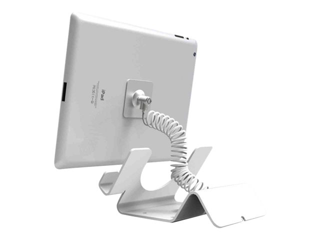 Compulocks Universal Tablet Holder with Coiled Cable Lock - Stativ - for tablet - låsbar - højglansaluminium - hvid - skrivebord CL12CUTHWB