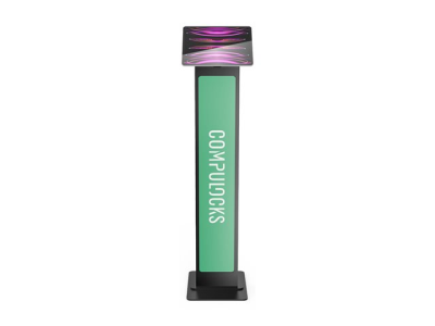 Our BrandMe floor stand allows you to utilize a panel for branding, call to action or custom design to bring attention to your interactive display or kiosk. The tilting mount allows the iPad enclosure to be set in either portrait or landscape mode and the stand base offers additional security features, securing the power source and bolting the unit to the floor.