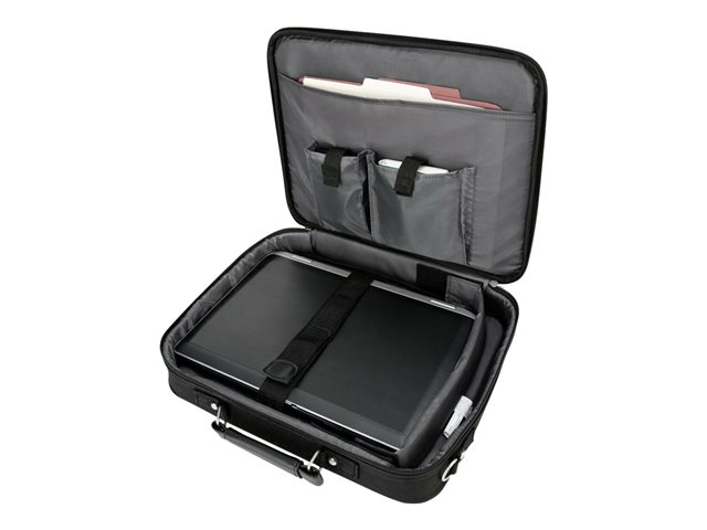Featuring a workstation area with disk pockets, pen holders, mobile phone and PDA compartments, business card holders and many more additional pockets this case will improve your organization. It features a rear file/document pocket plus an external gusseted pocket that is perfect for accessories and miscellaneous items. Including a rear luggage strap to secure your case to your trolley, enhanced padded shoulder strap and cushioned handle for enhanced comfort, this case is great to get you started.